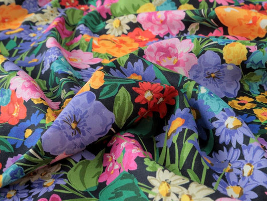 Elsie Floral Viscose Crepe - Black by Fabric Godmother (2024 Range)