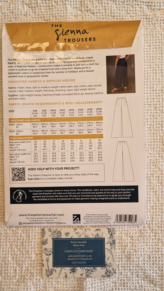 Dressmaking Pattern - The Pattern Preacher - The Sienna Trouser - Size 6-20