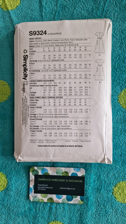 Dressmaking Pattern - Simplicity S9324 - Size 6-22