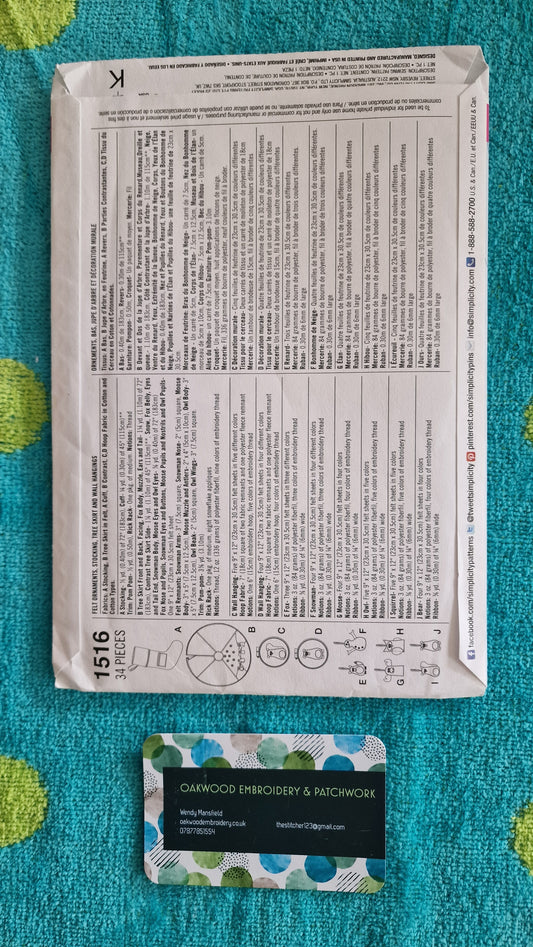 Craft Pattern - Simplicity 1516 - Christmas - One Size