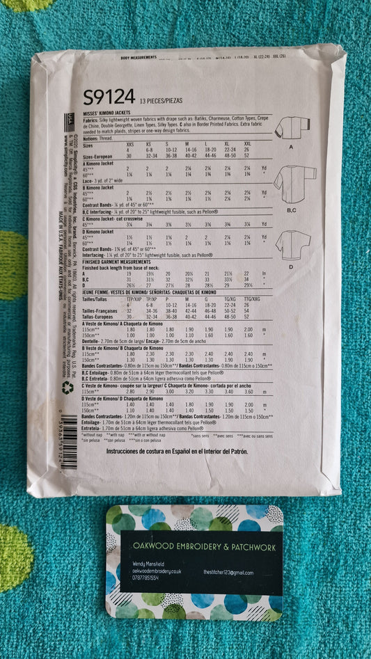 Dressmaking Pattern - Simplicity S9124 - Size XXS to XXL