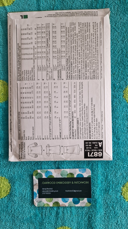 Dressmaking Pattern - New Look 6871 - Size 10 to 22