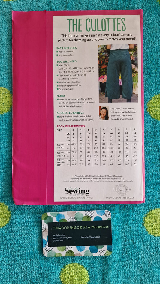 Dressmaking Pattern - The Culottes Trouser - Size 6 to 22